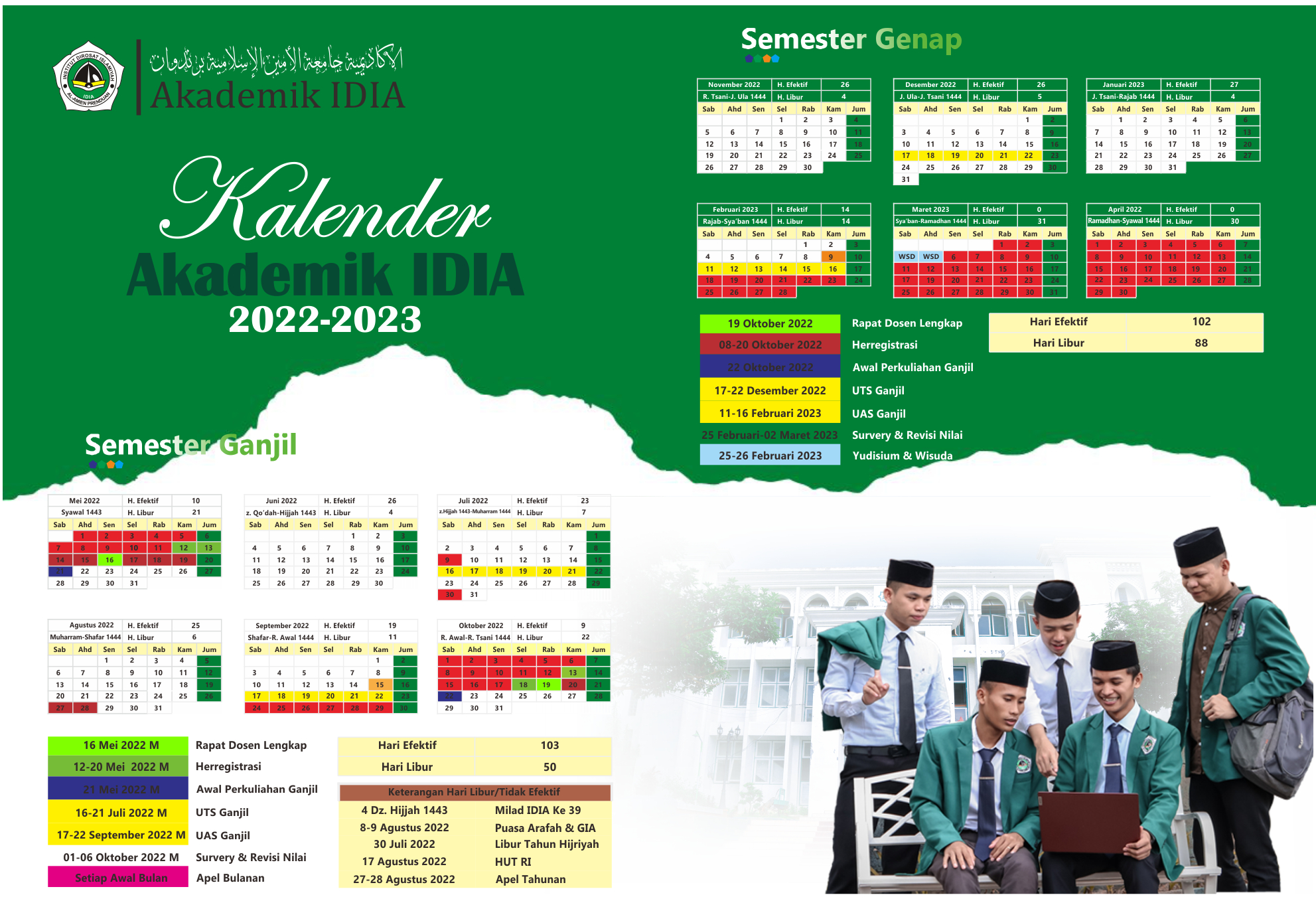 Jadwal kegiatan akademik, seminar, workshop, dan acara penting lainnya di lingkungan kampus.