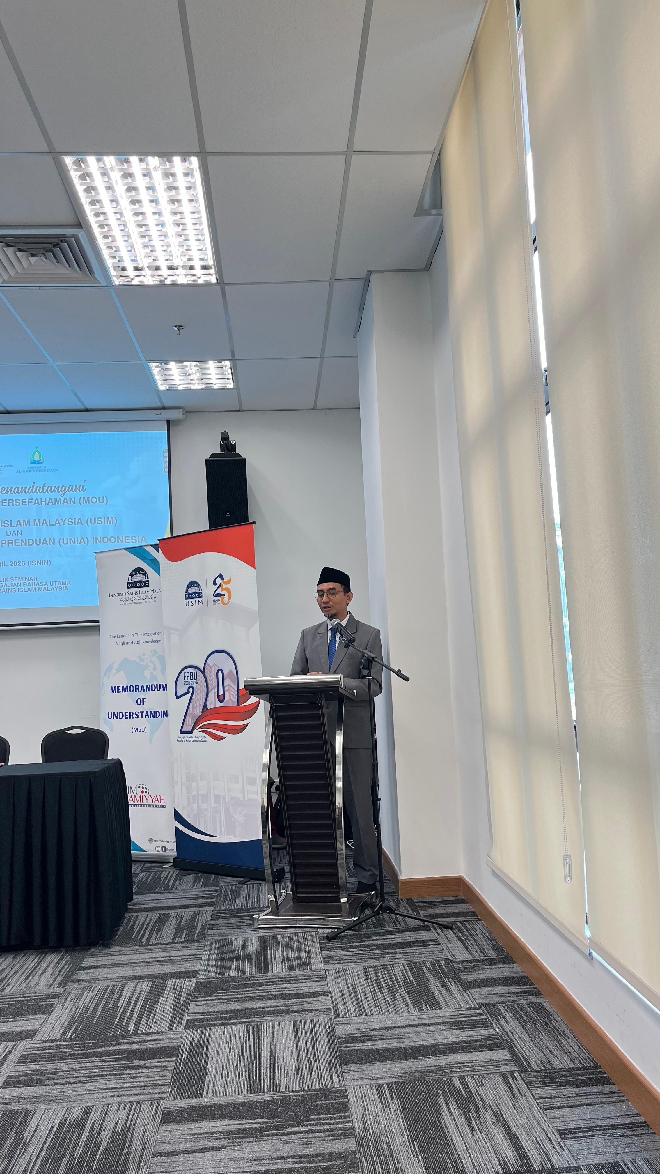 Puncak acara ditandai dengan penandatanganan MoU antara USIM dan UNIA, yang diharapkan menjadi landasan bagi berbagai program kolaboratif ke depan, seperti pertukaran dosen dan mahasiswa, penelitian bersama, pengembangan bahasa Arab, serta peningkatan kualitas pendidikan berbasis internasionalisasi kampus. Setelah prosesi penandatanganan, kegiatan dilanjutkan dengan penyampaian cenderamata, sesi foto bersama, dan jamuan ringan di Ruang Alumni. Acara berakhir dalam suasana penuh keakraban dan optimisme terhadap masa depan kerja sama kedua lembaga.