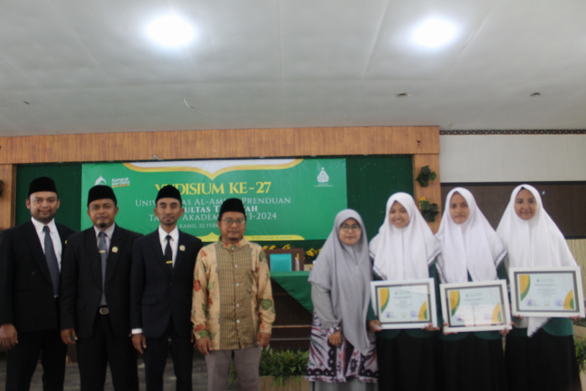 Universitas Al-Amien Prenduan (UNIA) - Fakultas Tarbiyah gelar yudisium ke-27 di lantai III gedung Rektorat pada Kamis (22/02), dengan total 99 calon wisudawan/wisudawati dari dua program studi, yakni Pendidikan Agama Islam (PAI) dan Pendidikan Bahasa Arab (PBA). Acara ini dihadiri oleh Dekan Fakultas Tarbiyah, Dr. Yusfar Ramadhan, S.Hum., M.Pd.I, serta wakilnya, Uswatun Hasanah, S.Hum., M.A., Ketua Program Studi PAI, Dr. Ach. Nurholis Majid, S.Sos.I., M.Pd., Ketua Program Studi PBA, Dr. Izzat Amini, S.Sos.I., M.Pd, beserta jajaran dosen Fakultas Tarbiyah.